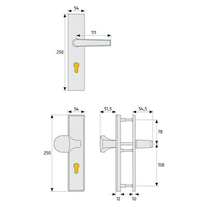 | Stärke Schild/ Rosette | 12, mm, außen, 10, mm, innen |