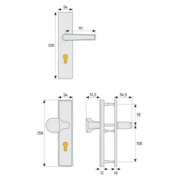 BAUHAUS Abus Schutzbeschlag HLT612 Hauseingangstür, Aluminium, Türstärke: 52 Mm – 72 Mm, Knopf Außen, Drücker Innen