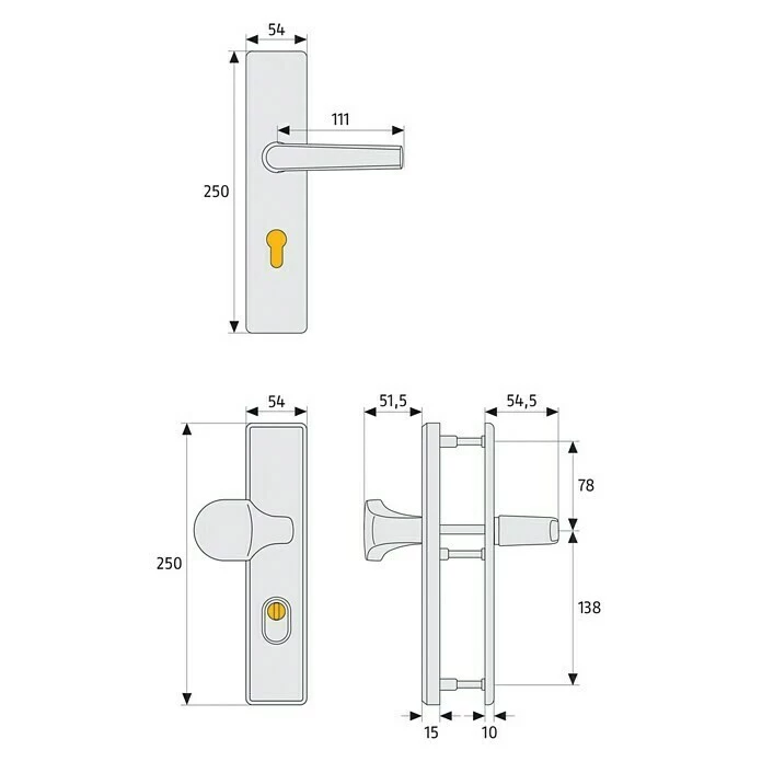 BAUHAUS Abus Schutzbeschlag HLZS814 Hauseingangstür, Messing, Türstärke: 52 Mm – 72 Mm, Knopf Außen, Drücker Innen, Form Schild: Eckig