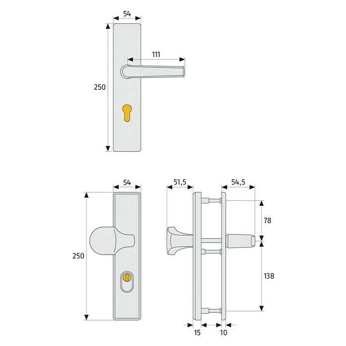 BAUHAUS Abus Schutzbeschlag HLZS814 Hauseingangstür, Neusilber, Türstärke: 52 Mm – 72 Mm, Drücker Beidseitig, Form Schild: Eckig