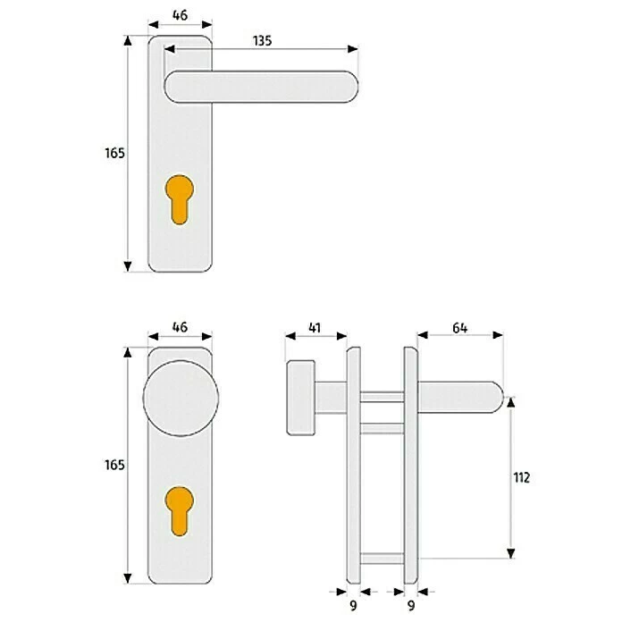 Der Schutzbeschlag KFG von Abus eignet sich für den Einsatz auf Feuerschutztüren mit einer Türstärke von 40 – 66 mm. Er verfügt über einen Knopf auf der Außenseite sowie einen Drücker auf der Innenseite und kann sowohl bei rechts als auch links angeschlagenen Türen verwendet werden. Zur Feuersicherheit des Schutzbeschlages trägt der, von einem Kunststoff-Abdeckschild verdeckte Stahlgrundschild sowie der Kunststoffdrücker mit Stahlkern bei. Der Tür-Schutzbeschlag KFG von Abus bietet, dank der vormontierten Stahlnocken, einfach zu montierende Sicherheit für Ihr Zuhause.