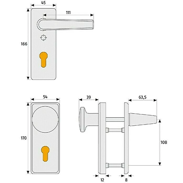 | Stärke Schild/ Rosette | 8, mm, innen, 12, mm, außen |