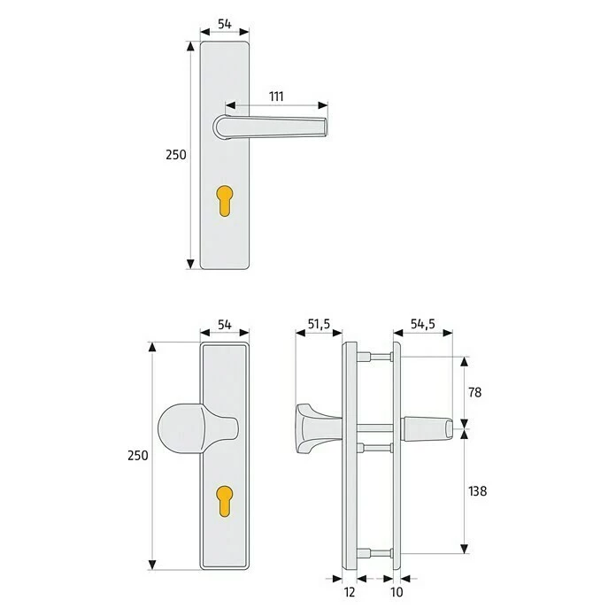 BAUHAUS Abus Schutzbeschlag KLT512 Wohnungsabschlusstür, Aluminium, Türstärke: 37 Mm – 47 Mm, Knopf Außen, Drücker Innen