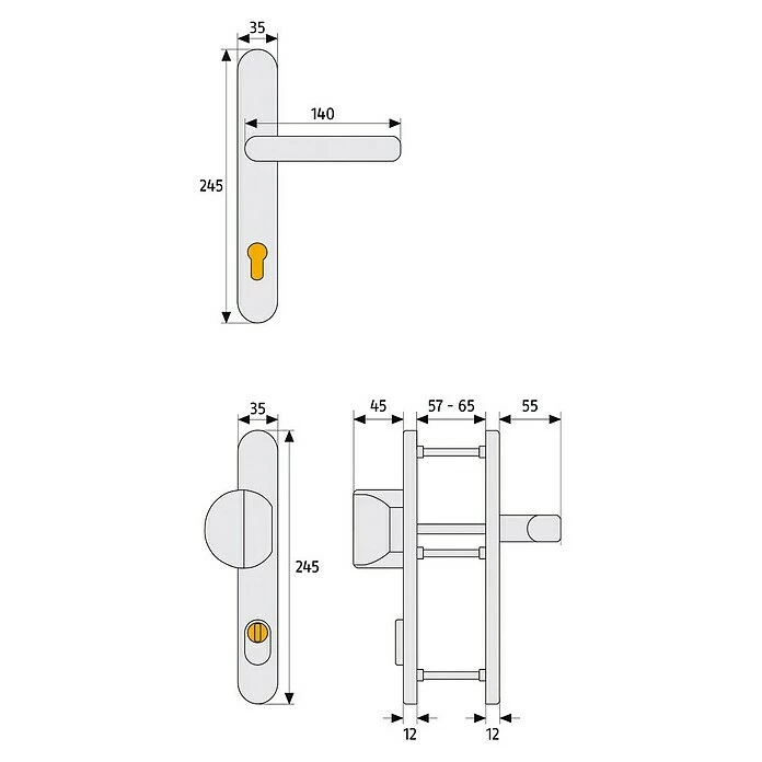BAUHAUS Abus Schutzbeschlag SRG 92 N Schmalrahmen, Aluminium, Türstärke: 59 Mm – 69 Mm, Drücker Beidseitig