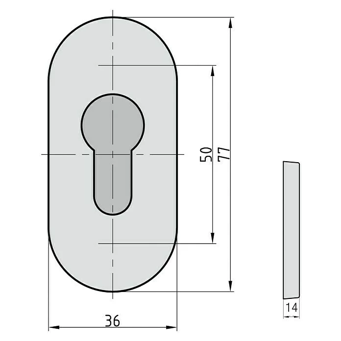 BAUHAUS Basi Rosette SR 4100 PZ L X B: 77 X 36 Mm, Stärke Schild/ Rosette: 14 Mm, Edelstahl