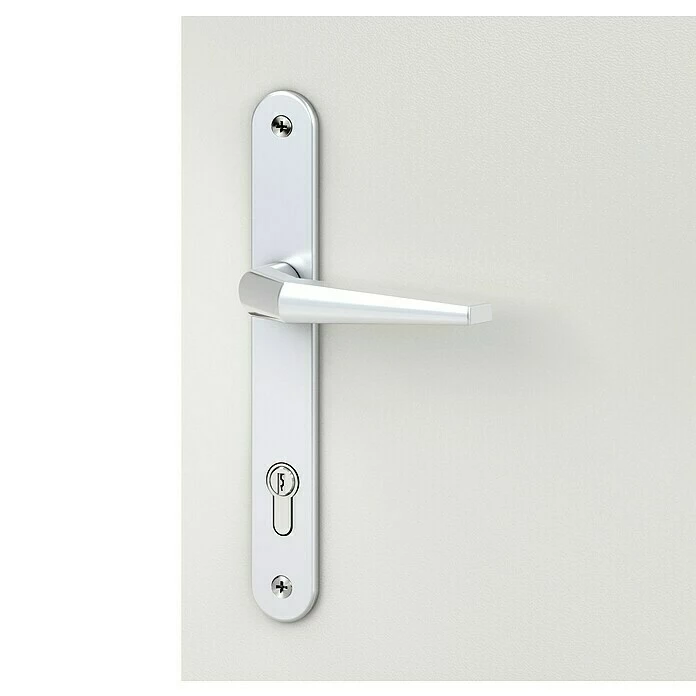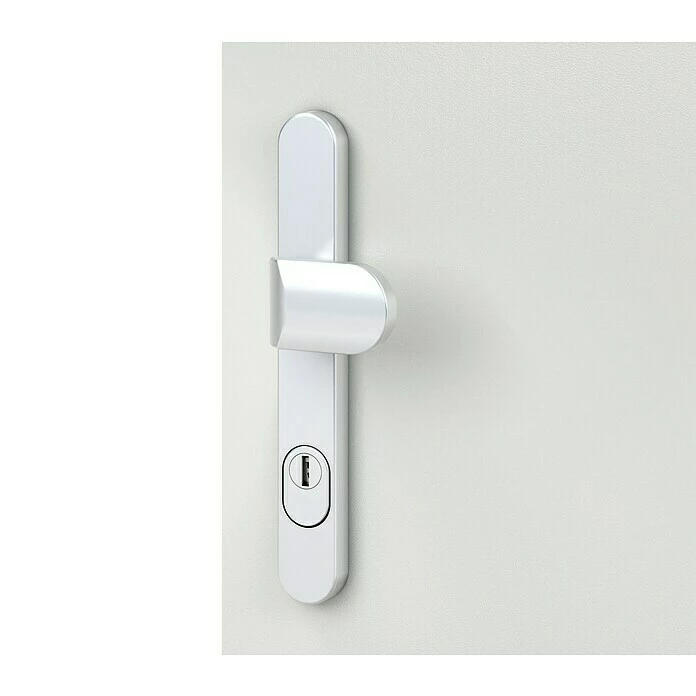 BAUHAUS Basi Schmalrahmengarnitur ES0 VMS Hauseingangstür, Silber, Mit Zylinderabdeckung, Knopf Außen, Drücker Innen, Stärke Schild/ Rosette: 15 Mm