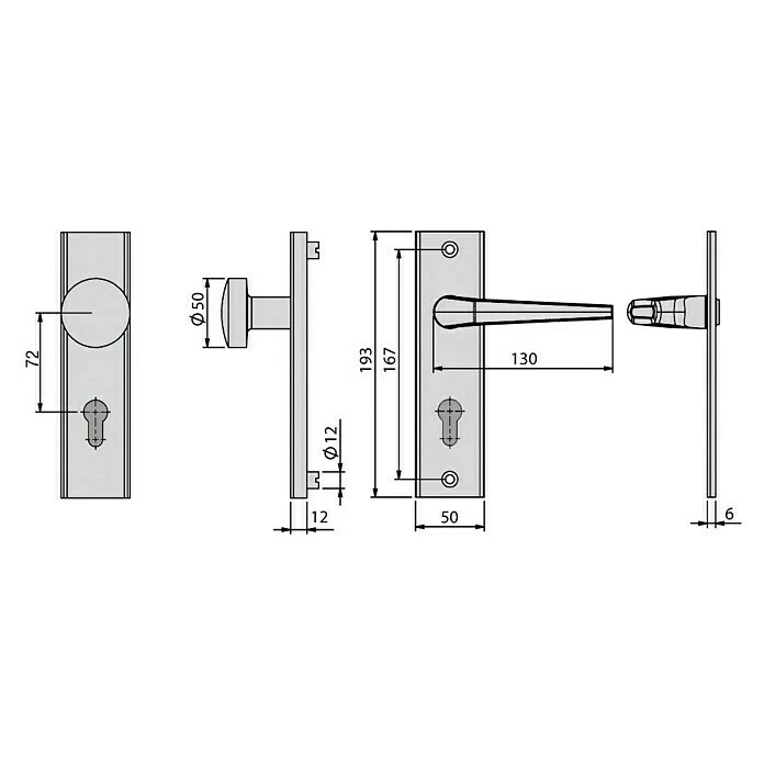 Der hochwertige Vollmaterial-Schutzbeschlag der Marke BASI besteht aus robusten und modernen Aluminium F2. Der Beschlag besitzt einen abgerundeten Knopf außen und einem Drücker in Standard innen. Das eckige Kurzschild besitzt eine Schildstärke von 12 mm. Die Wechselgarnitur ist mit einem Abstand von 72 mm gefertigt. Der Beschlag kann bei allen Außentüren, Zwischentüren oder Nebeneingangstüren, die nur von einer Seite aus geöffnet sein sollen eingesetzt werden. Zudem kann der Türbeschlag auch bei Wohneingangs- oder Haustüren verwendet werden. Durch die vorgefertigte Profilzylinderlochung für einen Türzylinder, kann die Tür von beiden Seiten mit dem Schlüssel geöffnet werden. Der Schutzbeschlag aus Vollmaterial kann bei Türen mit einer Türblattstärke von 38-42 mm, sowohl DIN LINKS / DIN RECHTS eingesetzt werden. Innen Vierkant mit 8 mm – innen sichtbare Verschraubung.
