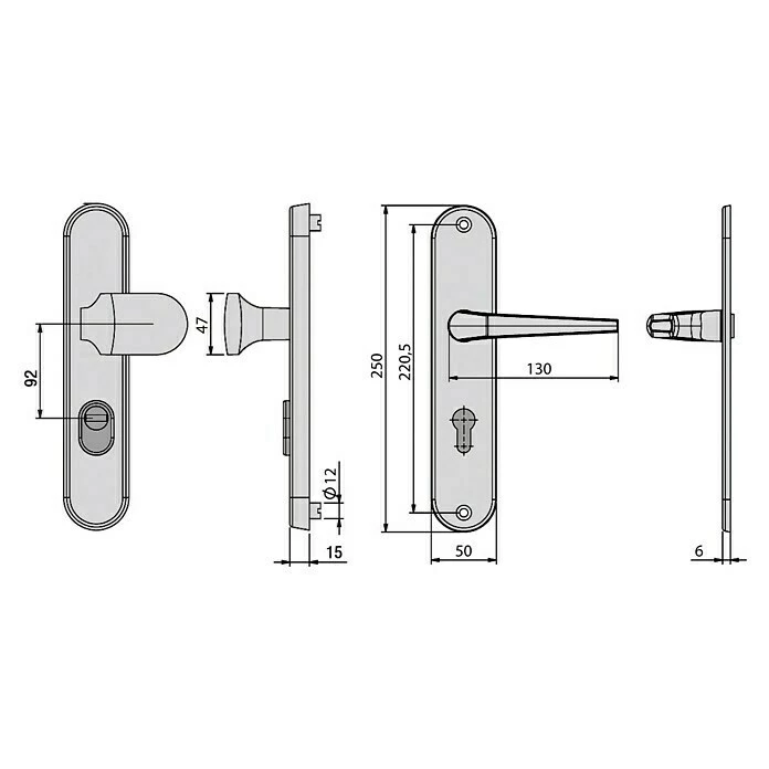 BAUHAUS Basi Schutzbeschlag ES0 VMS Hauseingangstür, Silber, Distanznorm: 92 Mm, Mit Zylinderabdeckung, Stärke Schild/ Rosette: 15 Mm