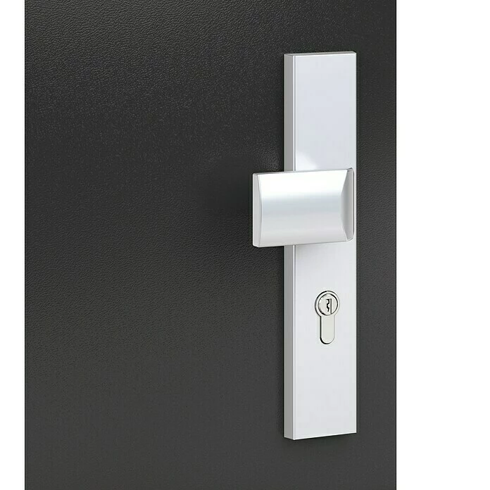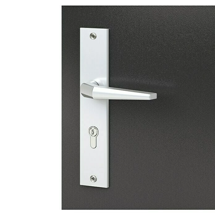BAUHAUS Basi Schutzbeschlag ES0 VMS Hauseingangstür, Silber, Knopf Außen, Drücker Innen, Distanznorm: 72 Mm, Stärke Schild/ Rosette: 12 Mm