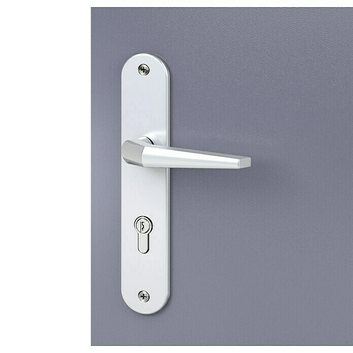 BAUHAUS Basi Schutzbeschlag ES0 VMS Wohnungsabschlusstür, Silber, Distanznorm: 72 Mm, Mit Zylinderabdeckung, Stärke Schild/ Rosette: 15 Mm