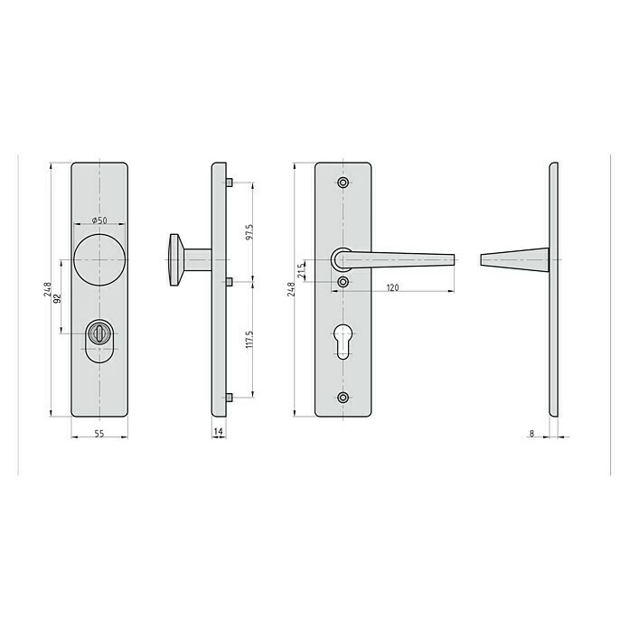 BAUHAUS Basi Schutzbeschlag SB 7500 ES0 Hauseingangstür, Aluminium, Türstärke: 50 Mm – 70 Mm, Knopf Außen, Drücker Innen, Mit Zylinderabdeckung