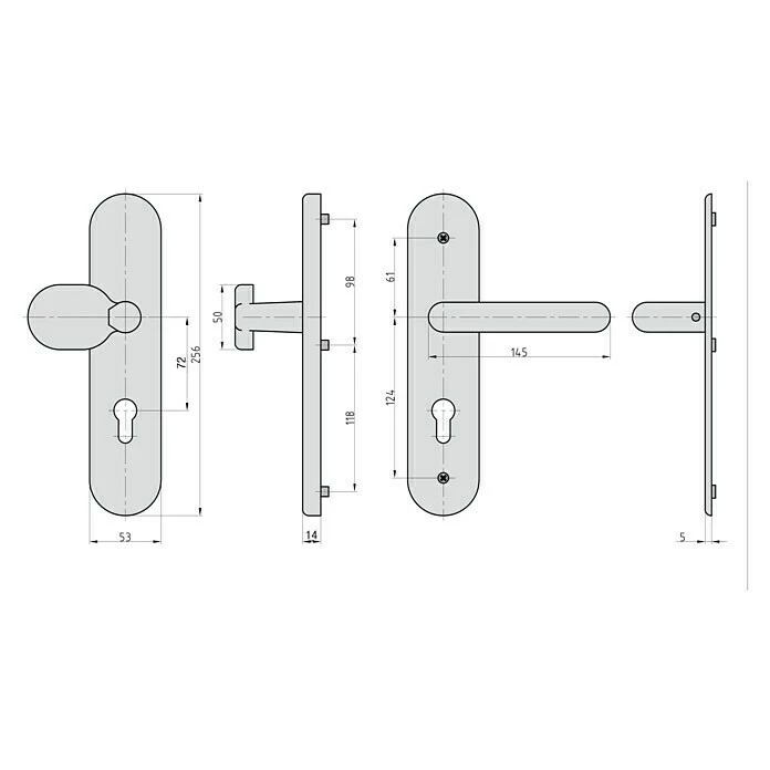 BAUHAUS Basi Schutzbeschlag SB 7500 ES1 Hauseingangstür, Aluminium, Türstärke: 38 Mm – 45 Mm, Knopf Außen, Drücker Innen, Ohne Zylinderabdeckung