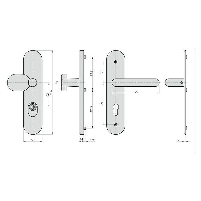 BAUHAUS Basi Schutzbeschlag SB 7500 ES1 Hauseingangstür, Aluminium, Türstärke: 50 Mm – 70 Mm, Knopf Außen, Drücker Innen, Mit Zylinderabdeckung