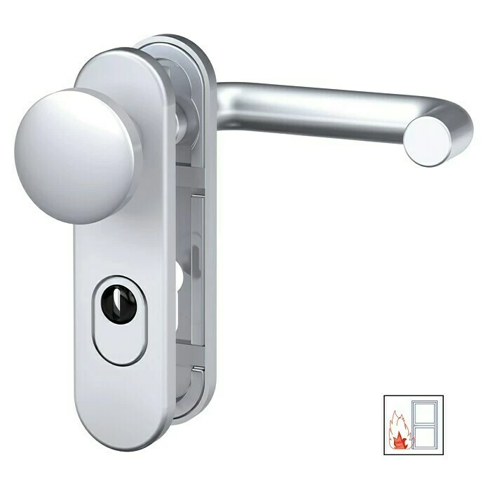 BAUHAUS Basi Schutzbeschlag SB/FS 2200K ES1 Feuerschutztür, Aluminium, Türstärke: 44 Mm – 66 Mm, Knopf Außen, Drücker Innen, Mit Zylinderabdeckung