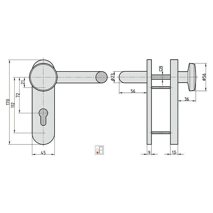 BAUHAUS Basi Schutzbeschlag SB/FS 2200K ES1 Feuerschutztür, Aluminium, Türstärke: 44 Mm – 66 Mm, Knopf Außen, Drücker Innen, Ohne Zylinderabdeckung