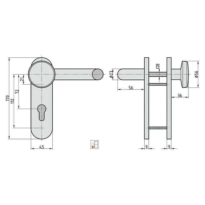 BAUHAUS Basi Schutzbeschlag ZT/FS 2100 Einsatzbereich: Feuerschutztür, Aluminium, Knopf Außen, Drücker Innen