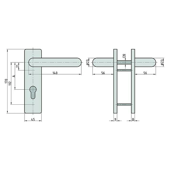 BAUHAUS Basi Schutzbeschlag ZT/FS 2100 Einsatzbereich: Feuerschutztür, Aluminium, Türstärke: 44 Mm – 66 Mm, Drücker Beidseitig
