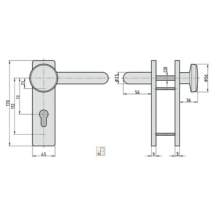 BAUHAUS Basi Schutzbeschlag ZT/FS 2100 Einsatzbereich: Feuerschutztür, Aluminium, Türstärke: 44 Mm – 66 Mm, Knopf Außen, Drücker Innen