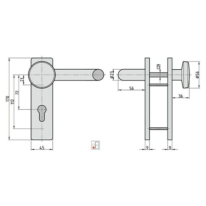 BAUHAUS Basi Schutzbeschlag ZT/FS 2150 Feuerschutztür, Schwarz, Türstärke: 44 Mm – 66 Mm, Knopf Außen, Drücker Innen, Eckig