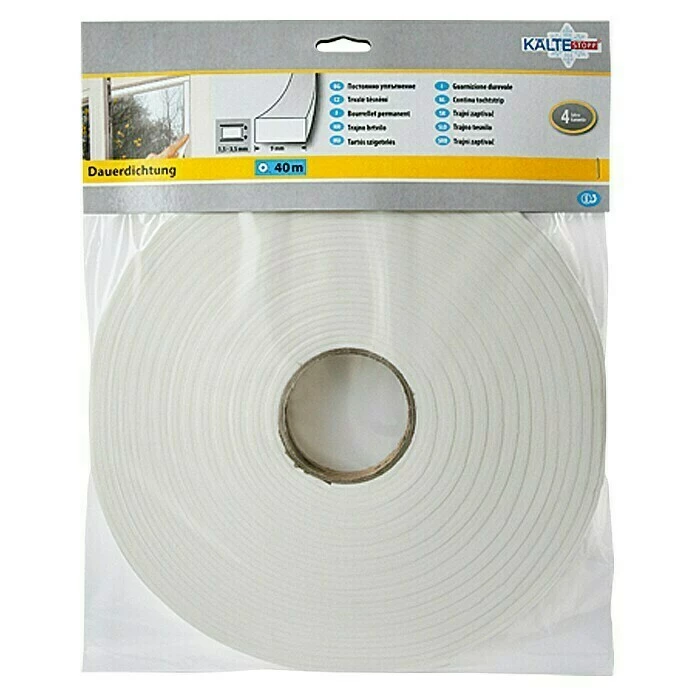 Die Dauerdichtung von Kältestopp ist eine feinporige, langlebige und witterungsbeständige Vinylschaumstoffdichtung. Die selbstklebende Dichtung ist leicht anzubringen, spart Heizkosten und stoppt Zugluft, Kälte, Lärm und Staub.