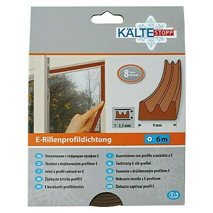 Die E-Profil-Dichtung von Kältestop ist eine witterungs-, UV- und ozonbeständige Fenster- und Türendichtung mit hervorragenden Isoliereigenschaften. Die selbstklebende Dichtung ist leicht anzubringen, spart Heizkosten und stoppt Zugluft, Kälte, Lärm und Staub.