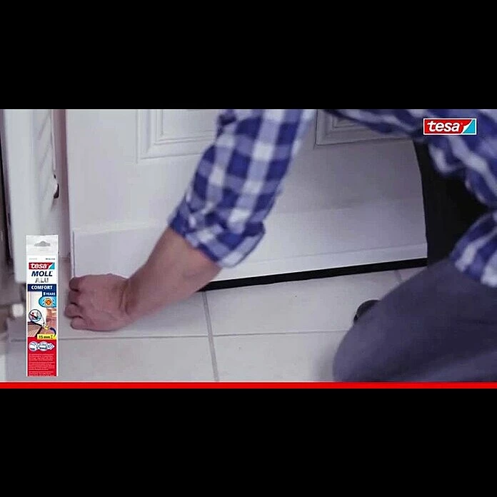 Die tesa MOLL Türdichtschiene Alu Comfort ist langlebig und selbstklebend. Sie schützt vor Zugluft, Kälte, Staub und Lärm. Die hochwertigen Nylonborsten sichern eine perfekte Abdichtung. Durch die gefederte Bürstenaufhängung für Fliesen, Kacheln und andere unebene Böden entsteht ein aktiver Niveauausgleich. Die tesamoll Türdichtschiene ist für eine Spaltenbreite bis zu 15 mm geeignet und hat eine Haltbarkeit bis zu 8 Jahren. Sie spart Energie, indem sie Zugluft, Kälte, Wärme, Lärm und Staub stoppt. Das Format ist individuell auf Türmaß kürzbar.