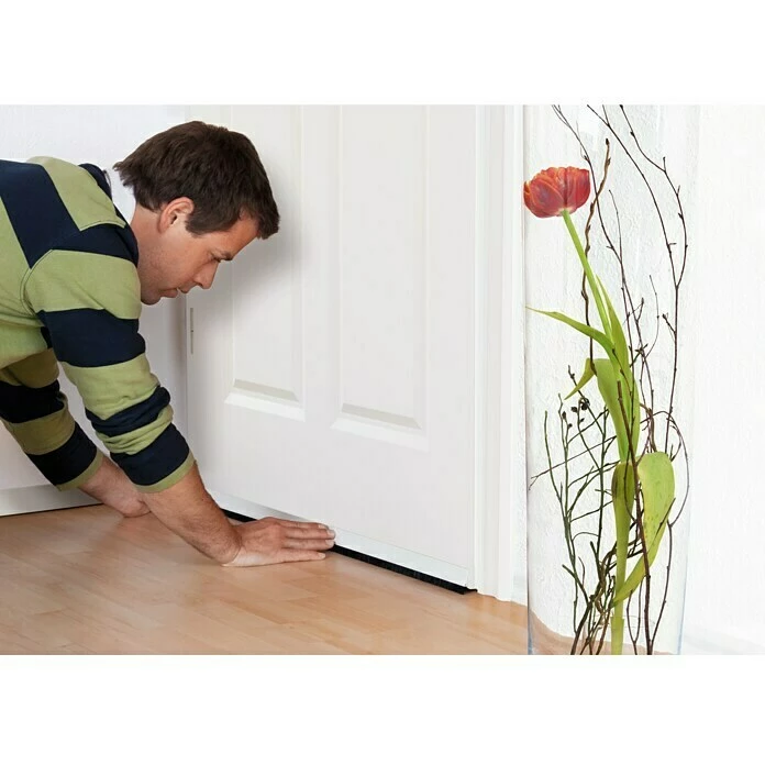 Die tesa MOLL Türdichtschiene Standard ist eine langlebige, selbstklebende Schiene, die vor Zugluft, Kälte, Staub und Lärm schützt. Die hochwertigen Nylonborsten sichern eine perfekte Abdichtung. Die Kunststoffschiene mit Bürstenaufsatz ist für eine Spaltenbreite bis zu 12 mm und für glatte Parkett-, Laminat-, Holzdielen- oder PVC-Böden geeignet. Mit einer Handsäge, sowie einem Seitenschneider kann die Türdichtschiene individuell auf die benötigte Länge gekürzt werden. Weiterhin unterstützt der Zugluftstopper eine Energiekostensenkung von bis zu 40 %. Er hat eine Haltbarkeit von bis zu 4 Jahren.