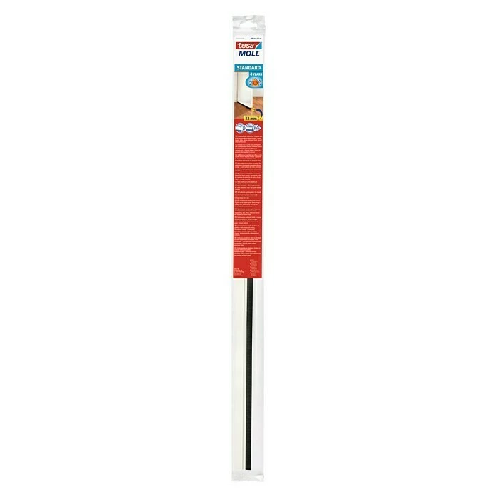 Die tesa MOLL Türdichtschiene Standard ist eine langlebige, selbstklebende Schiene, die vor Zugluft, Kälte, Staub und Lärm schützt. Die hochwertigen Nylonborsten sichern eine perfekte Abdichtung. Die Kunststoffschiene mit Bürstenaufsatz ist für eine Spaltenbreite bis zu 12 mm und für glatte Parkett-, Laminat-, Holzdielen- oder PVC-Böden geeignet. Mit einer Handsäge, sowie einem Seitenschneider kann die Türdichtschiene individuell auf die benötigte Länge gekürzt werden. Weiterhin unterstützt der Zugluftstopper eine Energiekostensenkung von bis zu 40 %. Er hat eine Haltbarkeit von bis zu 4 Jahren.
